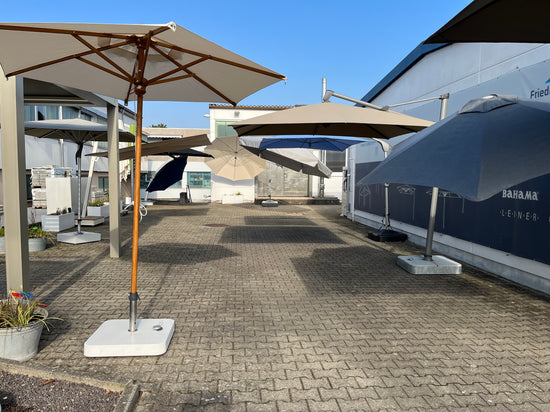 - Ampelschirme: May Mezzo, Dacapo oder Rialto, Glatz Sombrano S+, Sunwing C, Pendalex P+, GLATZ