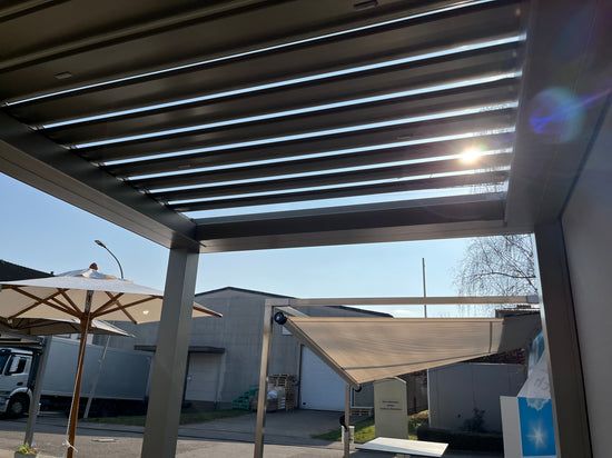 - Pergola Typen: Leiner SunRain Q, Leiner Pergola 615E, Kadeco