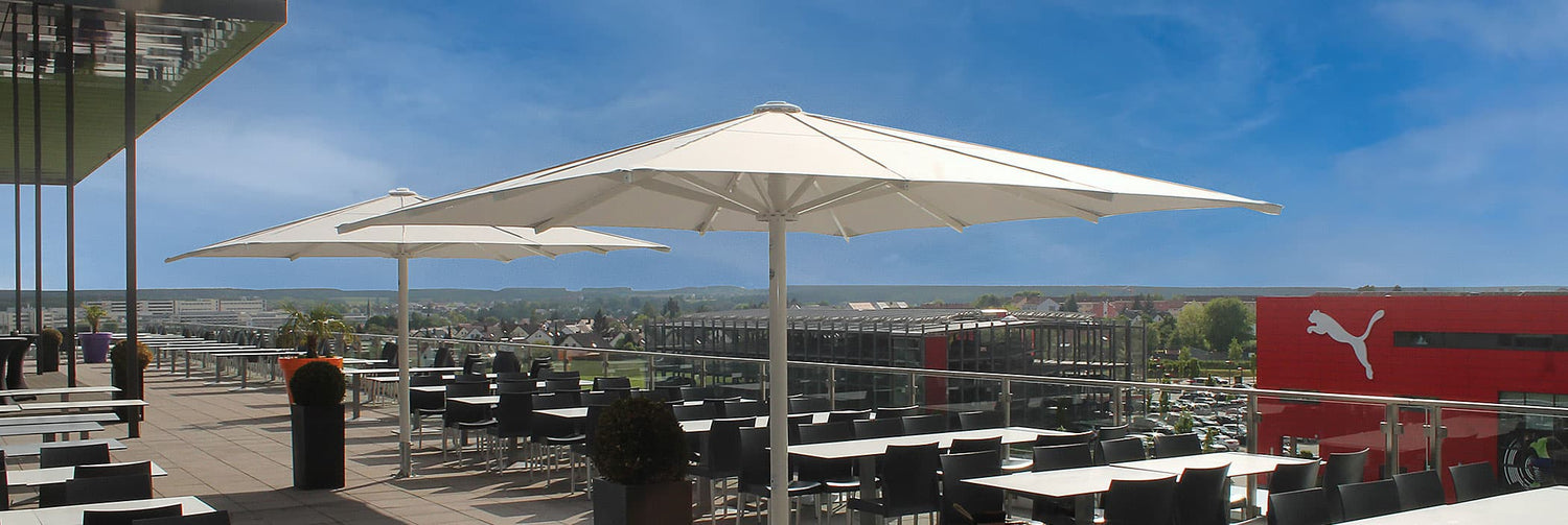 Wir können nahezu unser gesamtes Sortiment im Bereich Sonnenschirme, Großschirme, Sonnensegel oder freistehende Markisen mit Anpassungen für Ihr Unternehmen im Sinne der Corporate Identity anbieten.